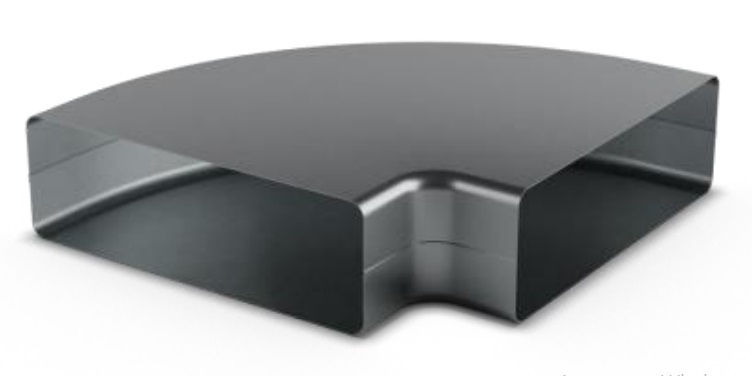 Горизонтальный отвод канала Quadrodec на 90° представляет собой горизонтальный отвод канала, сваренный швом, для соединения 2 прямоугольных каналов Quadrodec.