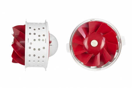 Рабочее колесо: Рабочее колесо смешанного типа с диагональными лопатками, сочетает в себе высокую производительность осевых вентиляторов и высокое давление центробежных. Обтекатель корректирует поток воздуха после рабочего колеса и выпрямителя во избежание потерь из-за завихрений. Обратный клапан: