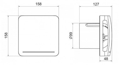 Модель оснащена гигростатом и таймером. Постоянная работа: вентилятор переходит на максимальную производительность по сигналу гигростата или внешнего выключателя (работает совместно с таймером). Периодическая работа: вентилятор включается по сигналу гигростата или внешнего выключателя (работает совместно с таймером). Доступна функция “Интервал”.