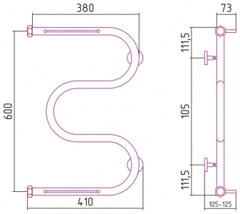 Водяной полотенцесушитель Сунержа, модели «М-образный»