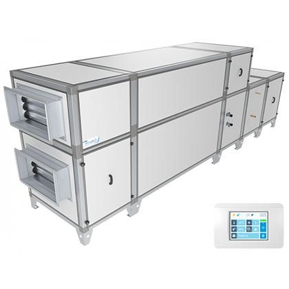 - Приточно-вытяжная установка напольного типа с противоточным пластинчатым рекуператором, системой защиты от замерзания.