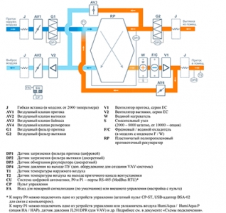 - HAP – Управление увлажнителем с водяным пред- и постнагревателем.