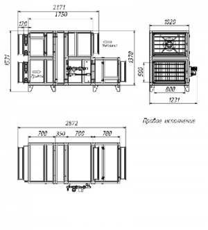 - Приточно-вытяжная установка с роторным рекуператором, водяным нагревателем и смесительным узлом с 2-х или 3-х ходовым клапаном (узел подбирается исходя из типа водоснабжения).