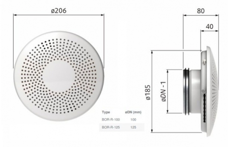 • Диффузор BOR-R выполнен из оцинкованной стали и покрыт белой порошковой краской RAL 9003, глянец 30.