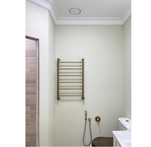 Диффузор монтируется в одной плоскости с натяжным потолком.