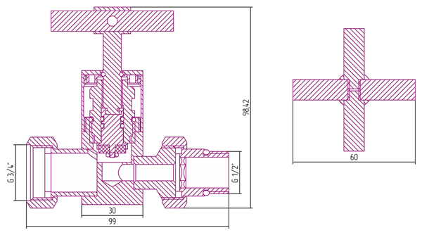 Вентиль прямой (крест) G 1/2" НР x G 3/4" НГ