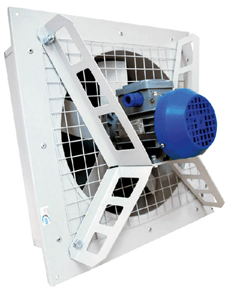 Осевые вентиляторы состоят из монтажной сетки, на которую закреплено алюминиевое рабочее колесо и электродвигатель, а также из рамки с жалюзи, которая закрывает вентилятор с внешней стороны помещения. На стальной корпус осевого вентилятора наносится порошковое покрытие RAL7035. Алюминиевое рабочее колесо защищено хромированной сеткой.